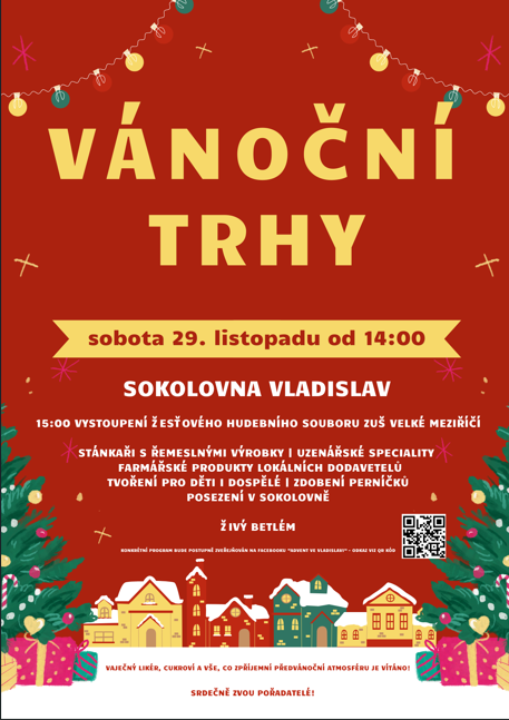 Sobota 29. 11. od 14:00hod v Sokolovně ve Vladislavi.