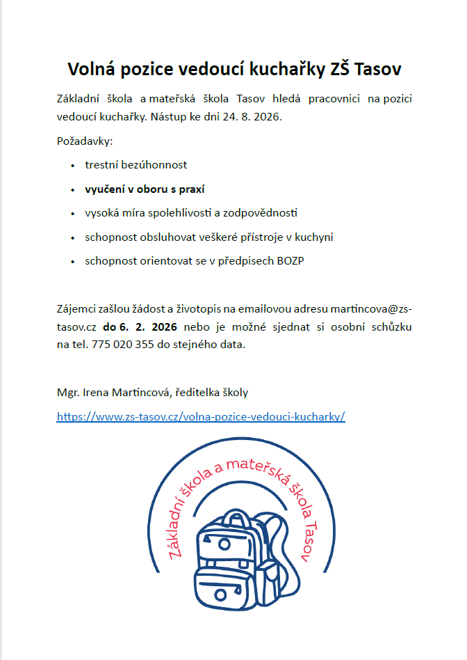 Vedoucí kuchařka