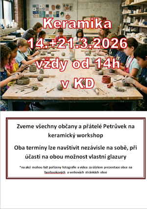 Zveme všechny občany a přátelé Petrůvek na keramický workshop.